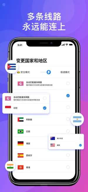 快连 VPN 是一个虚拟专用网络,旨在保护您的隐私和安全。只需要轻轻点击连接,即可安全匿名地上网。它采用完全自主研发的通讯协议,能够长期稳定使用!快连 VPN 有什么特点?- 顺畅连接:它采用自主研发的领先技术,首要保障连接的稳定性,不论您在哪里,只要有网络,一点就能连上;- 注重隐私:无需注册,下载即可使用,不会以任何形式来收集用户的隐私信息,防止个人信息的泄露,同时可以帮助您在公共 WIFI 下安全地上网;- 免费试用:新用户首次下载安装可获得免费试用时长,您可以先用它访问一些网站来体验它的功能,然后再决定是否为其付费;- 不限流量:采取按时计费的方式,您可按照周、月、季、年来选购不同时长的套餐,时长越久优惠越多哦;- 在线客服:您可以通过电子邮件或在软件内联系我们的客服,随时获取帮助;