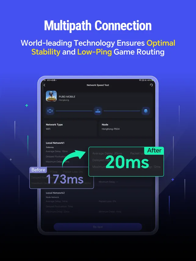 2023-09-22 New multipath connection for real-time routes analysis. Boost multiple game routes with low pings together and choose the lowest one always! 1.1.0