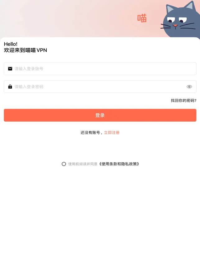 喵喵VPN加速器是一款高速稳定的VPN,随时随地,一键连接!无需注册,隐私保护,全球专线,高速稳定。加速访问海外网站、视频、聊天、各种热门app!我们致力于为您提供高速、稳定、安全的VPN服务,让您轻松穿越网络封锁、畅游互联网。无论您身处何地,只需轻轻一点,即可享受无限的网络自由!【高速稳定】我们的VPN服务采用先进的加密技术,确保您的网络连接稳定而迅速。无论是观看高清视频、进行网络游戏,还是下载大文件,我们都能为您提供流畅的体验。【全球节点】覆盖全球数十个国家和地区的节点,让您随心所欲地访问全球各类网站和服务。无论您需要访问哪个国家的网站,我们都能为您提供快速、可靠的连接。【隐私安全】我们尊重并保护您的隐私。我们的VPN服务采用严格的隐私政策,不记录您的上网记录,确保您的个人信息安全。无论您在做什么,都能安心畅游网络。【简单易用】无需复杂的设置,只需一键连接,即可享受畅快的网络体验。无界浏览,让您告别繁琐的网络封锁,尽情畅游互联网!无界浏览,为您带来无限畅享的网络体验!我们致力于为您提供高速、稳定、安全的VPN服务,让您轻松穿越网络封锁、畅游互联网。无论您身处何地,只需轻轻一点,即可享受无限的网络自由!【高速稳定】我们的VPN服务采用先进的加密技术,确保您的网络连接稳定而迅速。无论是观看高清视频、进行网络游戏,还是下载大文件,我们都能为您提供流畅的体验。【全球节点】覆盖全球数十个国家和地区的节点,让您随心所欲地访问全球各类网站和服务。无论您需要访问哪个国家的网站,我们都能为您提供快速、可靠的连接。【隐私安全】我们尊重并保护您的隐私。我们的VPN服务采用严格的隐私政策,不记录您的上网记录,确保您的个人信息安全。无论您在做什么,都能安心畅游网络。【简单易用】无需复杂的设置,只需一键连接,即可享受畅快的网络体验。无界浏览,让您告别繁琐的网络封锁,尽情畅游互联网!24/7客户支持:无论您遇到任何问题,我们的客户支持团队都会随时为您提供帮助和支持。 联系邮箱:support@yalazoho.world