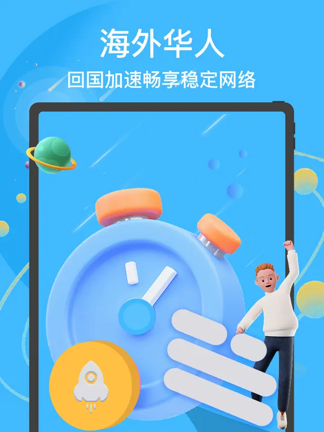 本应用是一款向海外华人提供网络加速服务的网络加速工具,帮助海外党一键穿梭回国,观看国内体育赛事、畅玩国内影音,为用户提供高速稳定的网络加速服务。优质回国线路,一键获得加速效果;支持视频加速,网页加速,游戏加速,直播加速等多类应用场景;实时优选安全节点,网速快并且超级稳定;注意:我们不能绕过地理限制或内容限制,仅支持大陆境内(特指中国大陆地区)能访问及合规的网站进行加速,请勿用做非法用途。