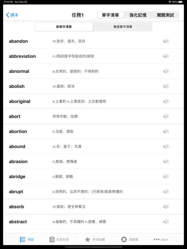掌握多少雅思單詞量決定了你的雅思分數基礎,擴大到任何英語考試都是這樣。雅思考試考前第一步,給自己準備一套雅思單詞本, 不過厚重的雅思詞彙書攜帶不方便,還佔地方,有了雅思IELTS背單詞app,一切都變得簡單高效起來! 融合艾賓浩斯(Ebbinghaus)記憶曲線, 綜合眾多背單詞使用者的實戰經驗, 通過與用戶的簡單交互, 利用人腦記憶黃金序列法找到學習者的記憶遺忘點,據此調整學習與複習進度,以達到長時記憶的效果。 所有內容均為離線模式,不需要連接互聯網,軟體支援iPhone、iPod touch、iPad等各版本的軟硬體設備