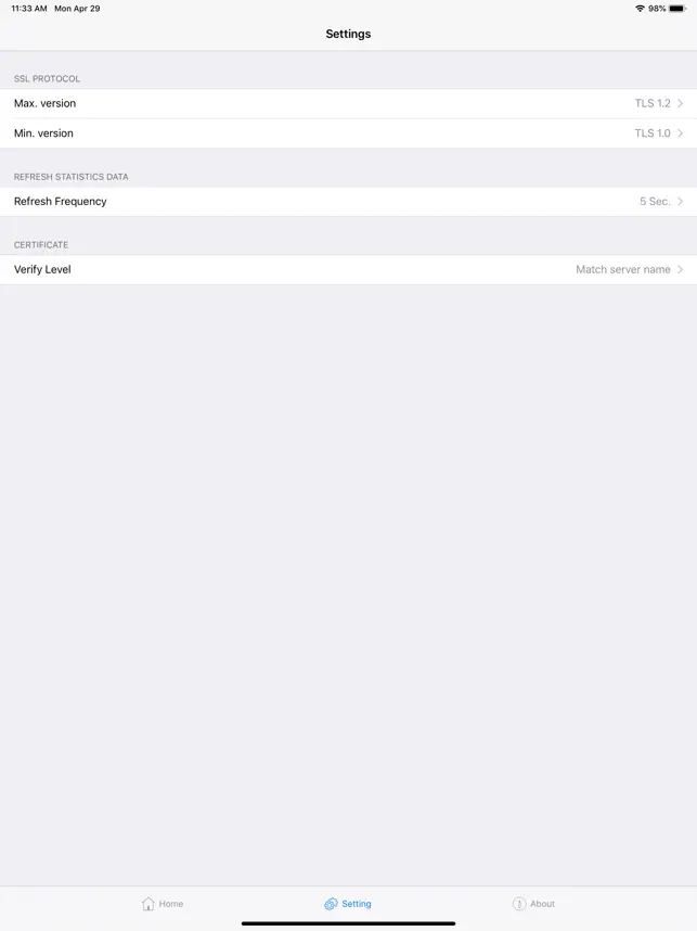 2019-04-30 1. Change default Max version of SSL protocols to TLS 1.2 2. Minor bugs fixed. 1.4.1