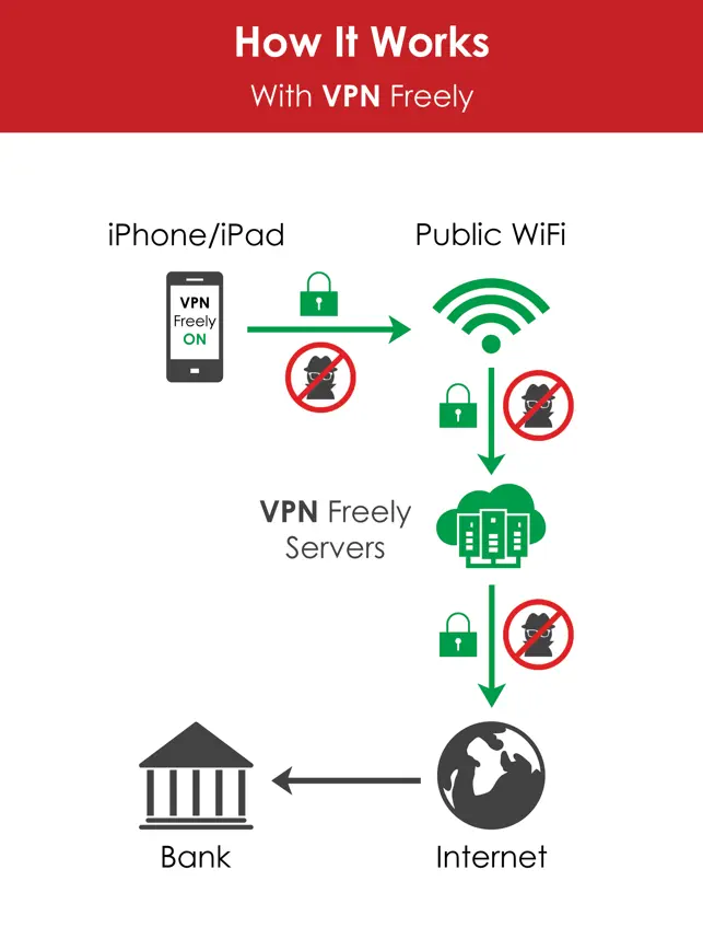 Everything on your iPhone or iPad uses the internet. Your email apps, web browsers, photo apps, banking apps, chat and social apps. Having secure internet access is critical and wifi routers are hacked every day. VPN Freely will encrypt your internet traffic preventing WiFi hackers from collecting data mid-stream. VPN Freely is the easiest way to secure your iPhone/iPad wifi & cellular internet activity. By simply clicking the "Secure Me" button you will be connected to our ultra secure Virtual Private Network. While connected you can safely surf the web, shop online and use banking apps without worry.Stay Connected. Stay Safe.What's so great about VPN Freely?- Free iOS VPN for iPhone and iPad- Get 2 VPN apps in one! ---- Default Free Mode (IKEv2 Protocol)---- OpenVPN Mode (UDP OpenVPN Protocol. Best for voip/chat apps.)- WiFi Hotspot Security- One Click Instant Access to Connect (No Sign-Up Required)- No Email, Names or Phone Numbers Required- 256 bit Bank Grade VPN Server Encryption- No Server Logs or Activity Tracking- We never sell user data. None of it. Ever.- Your internet traffic will travel over our secure IP similar to a Proxy- Encrypt the internet connection to your web browsers and mobile apps- No daily limits on usage- No data limits on streaming and downloads- Built on servers trusted by millionsPremium iOS VPN Service Subscriptions:- Go Premium to remove your speed limits and stop ads- Go Premium to remove the 30min session timeout - Go Premium to use OpenVPN Mode- Premium subscriptions are tied to your Apple ID. You can use one subscription on up to 5 devices as long as they're using the same Apple ID. After you go Premium simply use the "Restore Purchase" option on your additional devices (using the same Apple ID) to make them Premium also.- We do offer Free Trials of the Premium version from time to time. These are offered to Free users via popup message in the app.- At the end of your trial the auto-renew subscription for Monthly Premium VPN service will start- Payment will be charged to your iTunes Account at confirmation of purchase- Subscriptions automatically renew unless auto-renew is turned off at least 24-hours before the end of the current period- Subscriptions may be managed and auto-renewal may be turned off by going to the user's Account Settings after purchase- Any unused portion of a free trial period will be forfeited when you purchase a Premium subscriptionWhat is "WiFi Hotspot Security" anyway?WiFi is everywhere now and if we can save our cellular data even just a little bit, we want to connect. However, just because your phone wants to connect to a WiFi hotspot doesn't mean it's safe. The fact is your phone can't tell you if the hotspot is safe or not. If the hotspot is not secure other people online may be able to see your internet activity. Hackers love to sniff data on coffee shop WiFi networks because the customers feel comfortable there just like it's home. If the customer is comfortable they'll do things like personal banking online. This is why no public WiFi connection should be trusted.The Solution = VPN FreelyIt's so easy! One simple rule...After connecting to a Public WiFi Hotspot. Always, open your iPhone VPN Freely app (or iPad) and click "Secure Me". Download VPN Freely today! Don't forget to try our Premium iOS VPN upgrade for free!Website: http://vpnfreely.comPrivacy Policy: http://vpnfreely.com/privacyTerms of Service: http://vpnfreely.com/termsNeed help? Have a suggestion? Email us at support@vpnfreely.comVPN Freely was built by Silo IT Group in Seattle, WA (http://siloseattle.com).